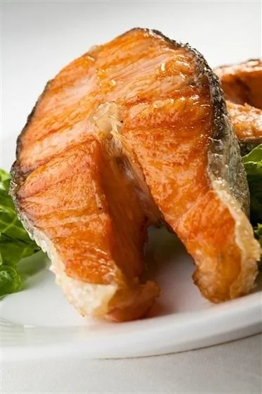 ШАГ 3 Промажьте сетку на гриле маслом (тем, в котором мариновалась рыба), остальной маринад больше не понадобится. Жарьте лосось на гриле примерно по 4 минуты с каждой стороны. Стейки можно считать готовыми, если центральная кость легко отделяется.