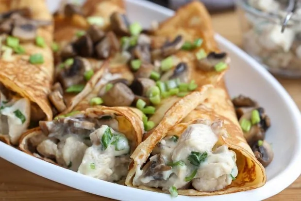 Грибная начинка для блинов с сырным соусом