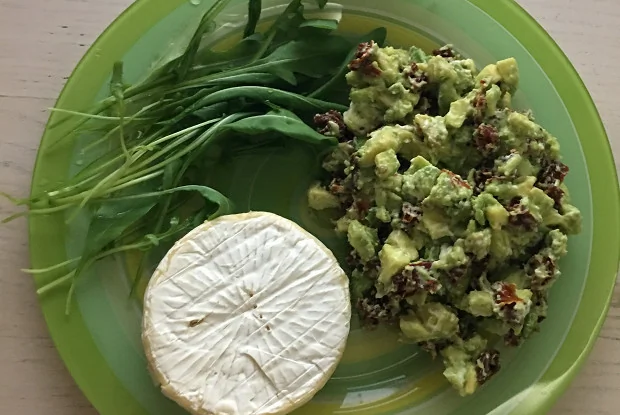 ШАГ 2 Почистить, нарезать авокадо, нарезать помидоры, добавить Филадельфию, перемешать.
