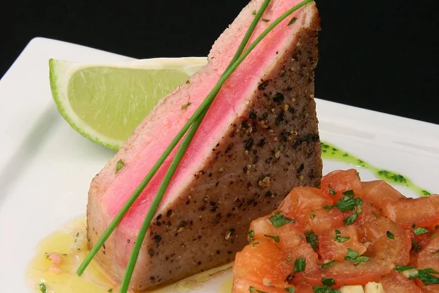 ШАГ 1 Филе тунца промыть и просушить на бумажной салфетке