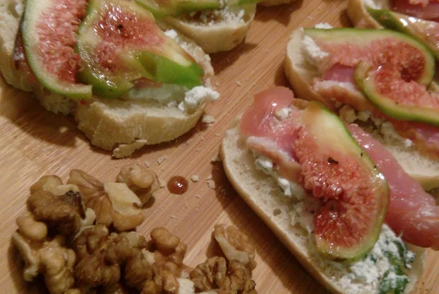 Брускетта с мягким сыром, инжиром и вяленым мясом