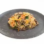 ШАГ 7 На ту же сковороду налить еще немного растительного масла, обжарить морковку, нарезанную соломкой, в течение 20 секунд, затем добавить таким же образом нарезанный перец и жарить еще 20 секунд. Переложить овощи в чистую миску.