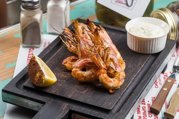 Креветки на гриле с соусом