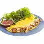 ШАГ 4 Хорошо разогреть сковороду диаметром около 20 см, смазать дно растительным маслом и влить тесто так, чтобы оно покрыло дно сковородки. Готовить около 5 минут, пока низ блинчика не станет хрустящим. На половину блина выложить часть свинины с креветками, сверху выложить немного ростков сои и накрыть свободной половиной блина. Так же поступить с оставшимися ингредиентами. Подавать бань-сео с большим количеством зелени и соусом.
