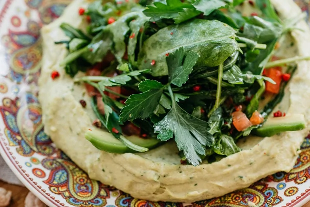 ШАГ 1 Взбить в блендере хумус классический с авокадо.
