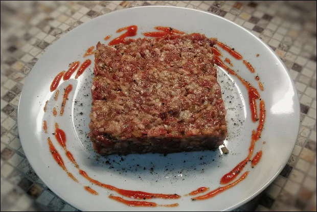 ШАГ 6 Разделить массу на две части, выложить при помощи формы на тарелки и гарнировать по вкусу.