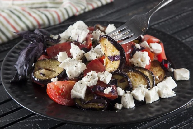 ШАГ 3 Смешайте помидоры с базиликом, баклажанами и сыром, нарезанным кубиками.