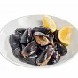 ШАГ 7 Залить мидии стаканом воды, уровень жидкости должен доходить до середины мидии. Накрыть крышкой, довести до кипения, а затем уменьшить огонь и варить 15 минут. Готовые мидии снять с огня, дать им остыть и убрать в холодильник на 30–60 минут. Подавать с дольками лимона.