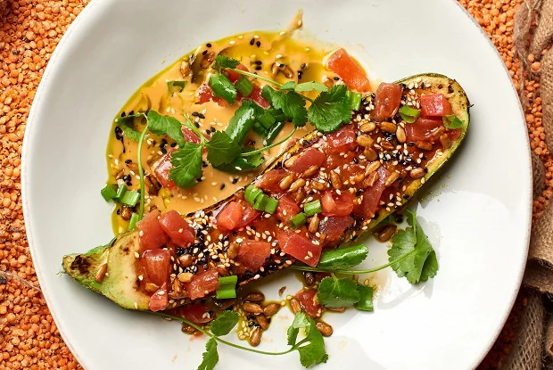 ШАГ 4 Полить соусом цукини, посыпать семечками и рубленой кинзой.