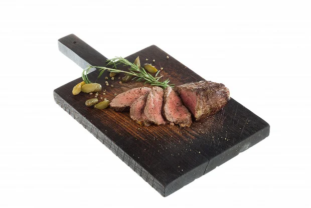 ШАГ 5 Готовое мясо переложить на доску с бумажным полотенцем и дать ему отдохнуть минут 10. Затем нарезать и подавать с корнишонами, украсив свежей веточкой розмарина и перцем.