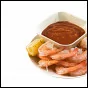 ШАГ 3 Смешать кетчуп, хрен, сок половины лимона, соевый соус, добавить черный перец и табаско по вкусу. Переложить соус в соусник, рядом выложить креветки и несколько долек лимона.