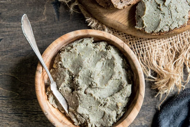 ШАГ 4 В стакан блендера сложить чечевицу, чеснок, пасту мисо, оливковое масло и жареный лук-шалот вместе с маслом из сковороды. Измельчить все до однородной массы. При необходимости добавить немного воды. Посолить и поперчить по вкусу, еще раз взбить.