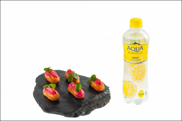 ШАГ 7 Сделать в эклере небольшое отверстие, начинить его муссом из лосося, окунуть верхушку эклера в айоли. Проделать то же самое со всеми эклерами. Подавать, посыпав кунжутом и украсив кислицей.