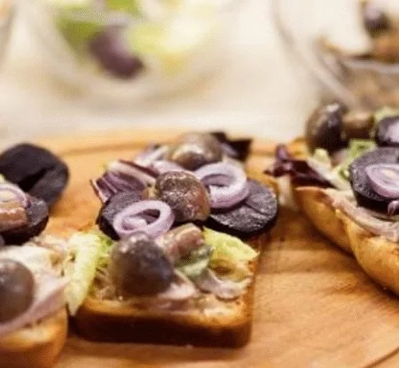 Ингредиенты для приготовления Брускетта с курицей и свеклой: