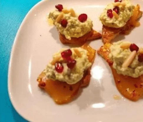 Остро-сладкая закуска с творогом, авокадо и карамелизированной грушей