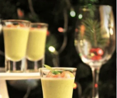 ШАГ 7 При подаче украсить креветкой, листиком базилика и горошиной.