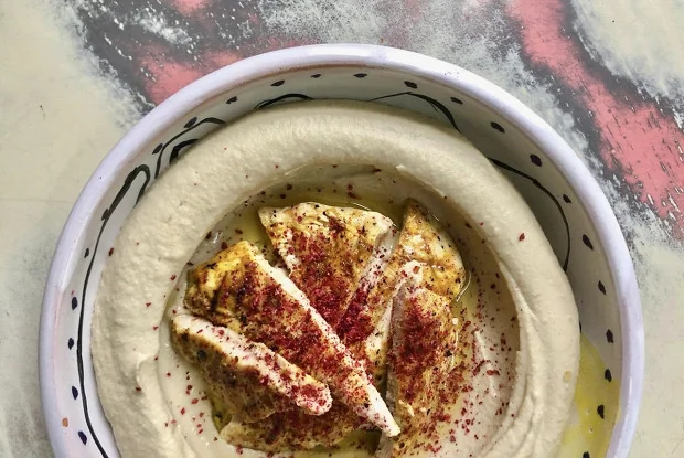 Вода Тахини Нут Лимонный сок Чеснок Филе куриного бедра Оливковое масло Растительное масло Смесь перцев Молотый кориандр Кумин (зира) Молотый кардамон Карри Молотая гвоздика Соль главная Закуски Арабская кухня Хумус