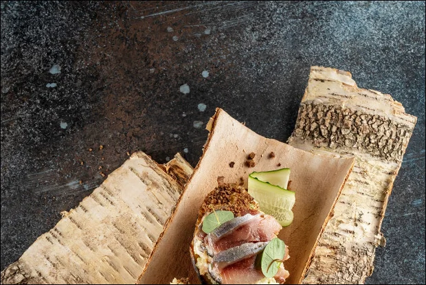 ШАГ 5 Выложить начинку в половинки картошки, украсить ломтиками селедки, перышком зеленого лука или укропом.