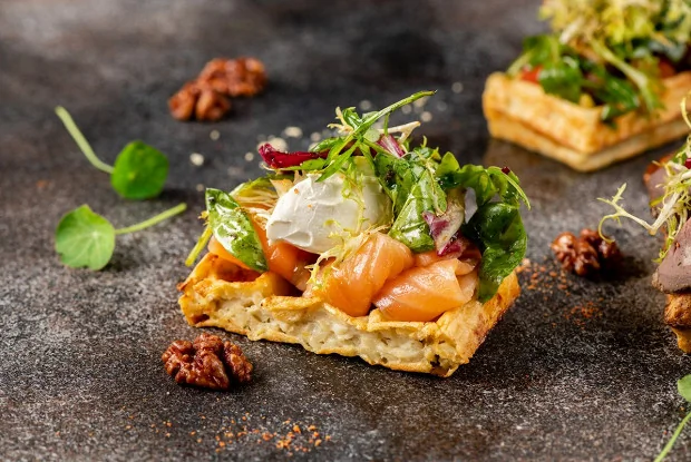 Ингредиенты для приготовления Брускетта с лососем на картофельной вафле: