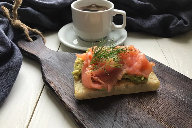 Ингредиенты для приготовления Брускетта с пастой из авокадо и семгой: