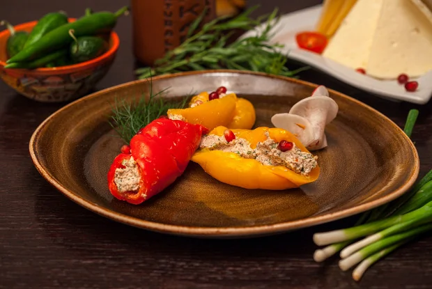 Ингредиенты для приготовления Запеченный болгарский перец с орехами и гранатом: