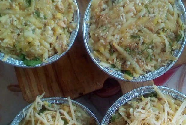 ШАГ 3 Выложить в формы для кексов. Посыпать натертым сыром.