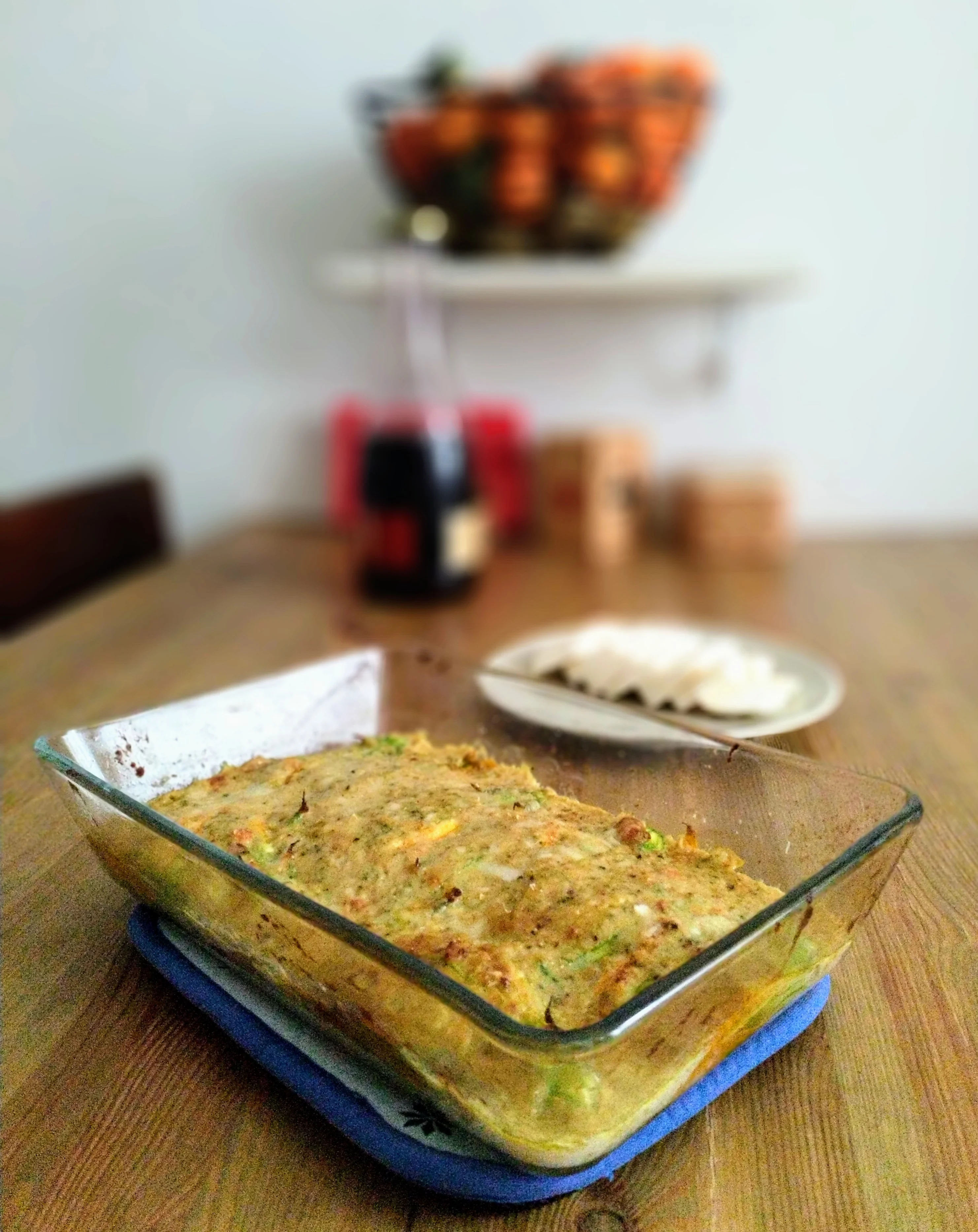ШАГ 4 Моцареллу нарезать крупно, выложить в миску, вбить яйцо, добавить соль, перец. Когда цукини с панчеттой и луком будут готовы, остудить их, выложить в ту же миску и размолоть блендером все это в относительно однородную массу, перемешать. Попробовать массу на соль-перец, при необходимости добавить.