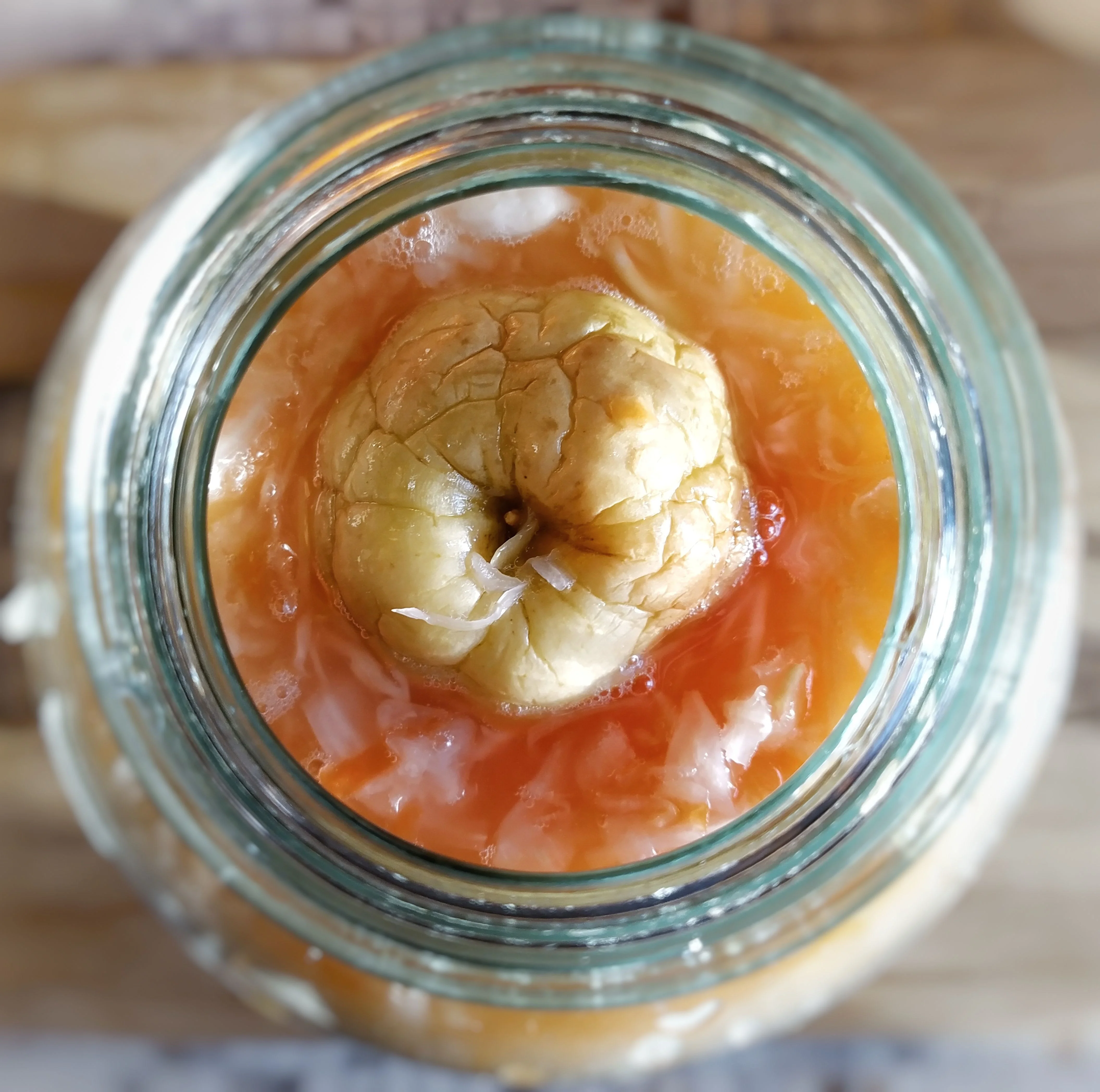 ШАГ 6 Капуста должна начать «гулять», то есть пениться и пузыриться. После этого нужно протыкать ее два раза в сутки или чаще, до того момента, пока этот процесс не закончится, то есть на поверхности перестанет образовываться пена и исчезнут пузыри. На это уйдет примерно 5–7 дней — зависит от температуры в помещении, где стоит капуста.