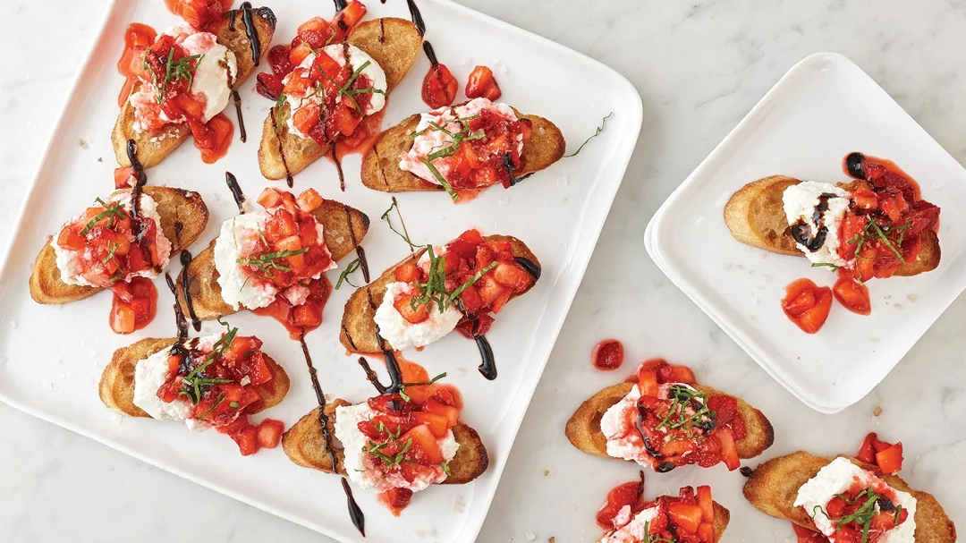 Ингредиенты для приготовления Кростини с клубникой, базиликом и корицей: