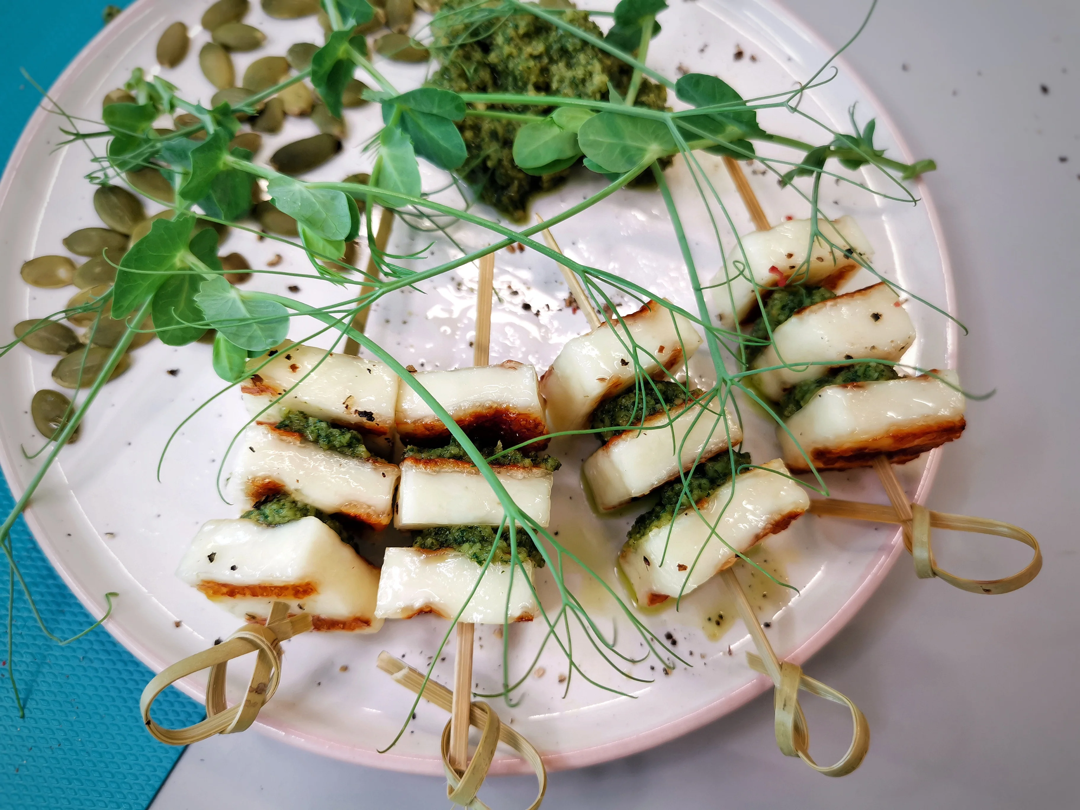 Ингредиенты для приготовления Канапе из сыра халуми с соусом песто: