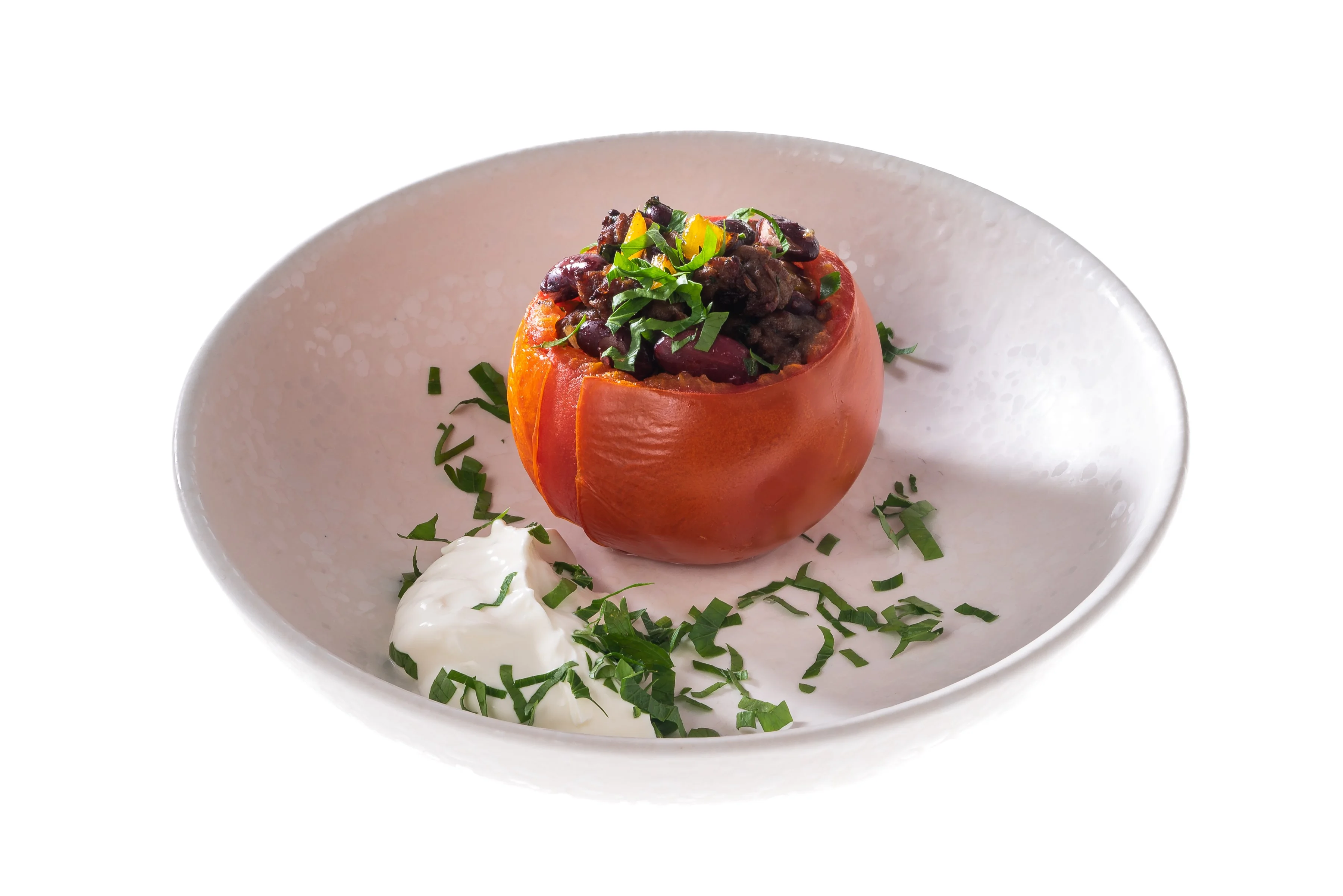 ШАГ 10 Выложить начинку в подготовленные помидоры и отправить их в духовку, разогретую до 200 градусов, на 15 минут.