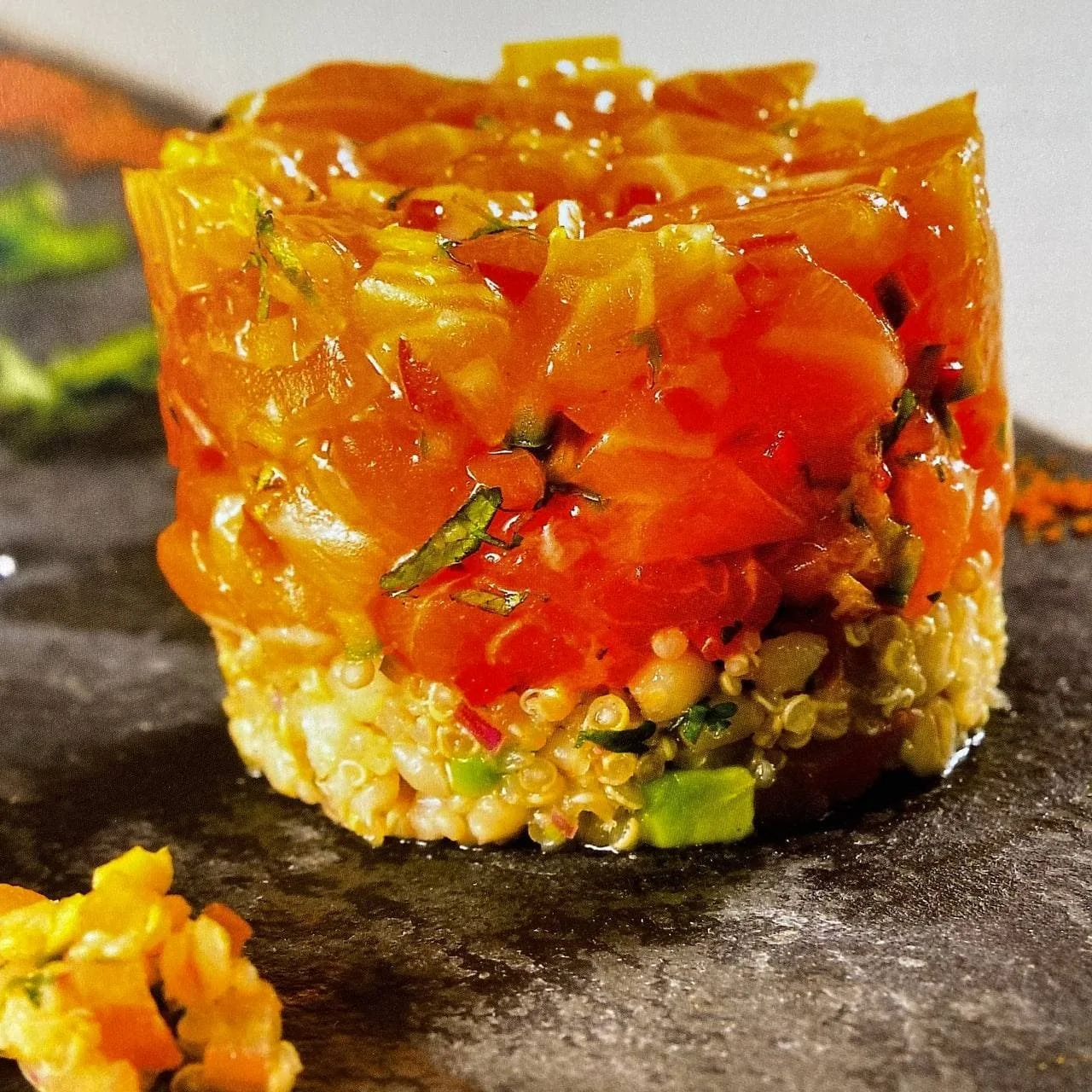 Севиче из лосося с киноа и приправой меркен