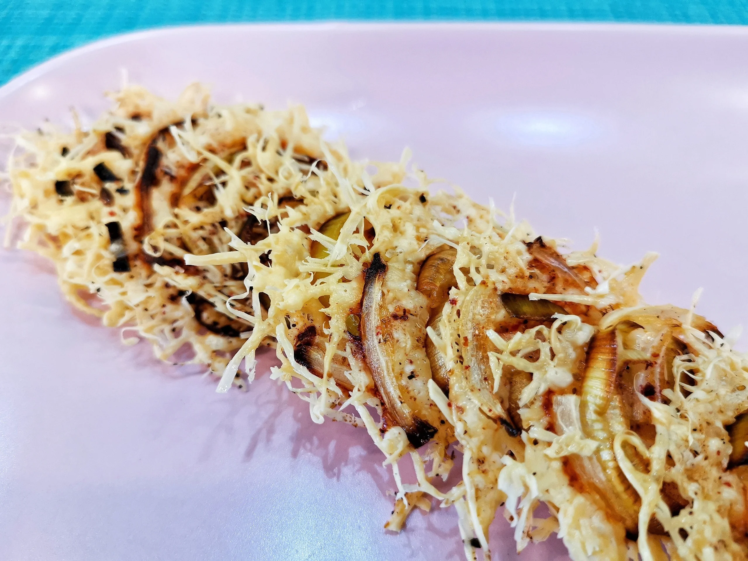 ШАГ 4 Сформировать из сыра круглые кучки на бумаге для запекания.