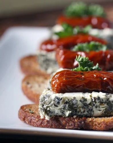 Канапе с сыром рикотта и запеченными томатами