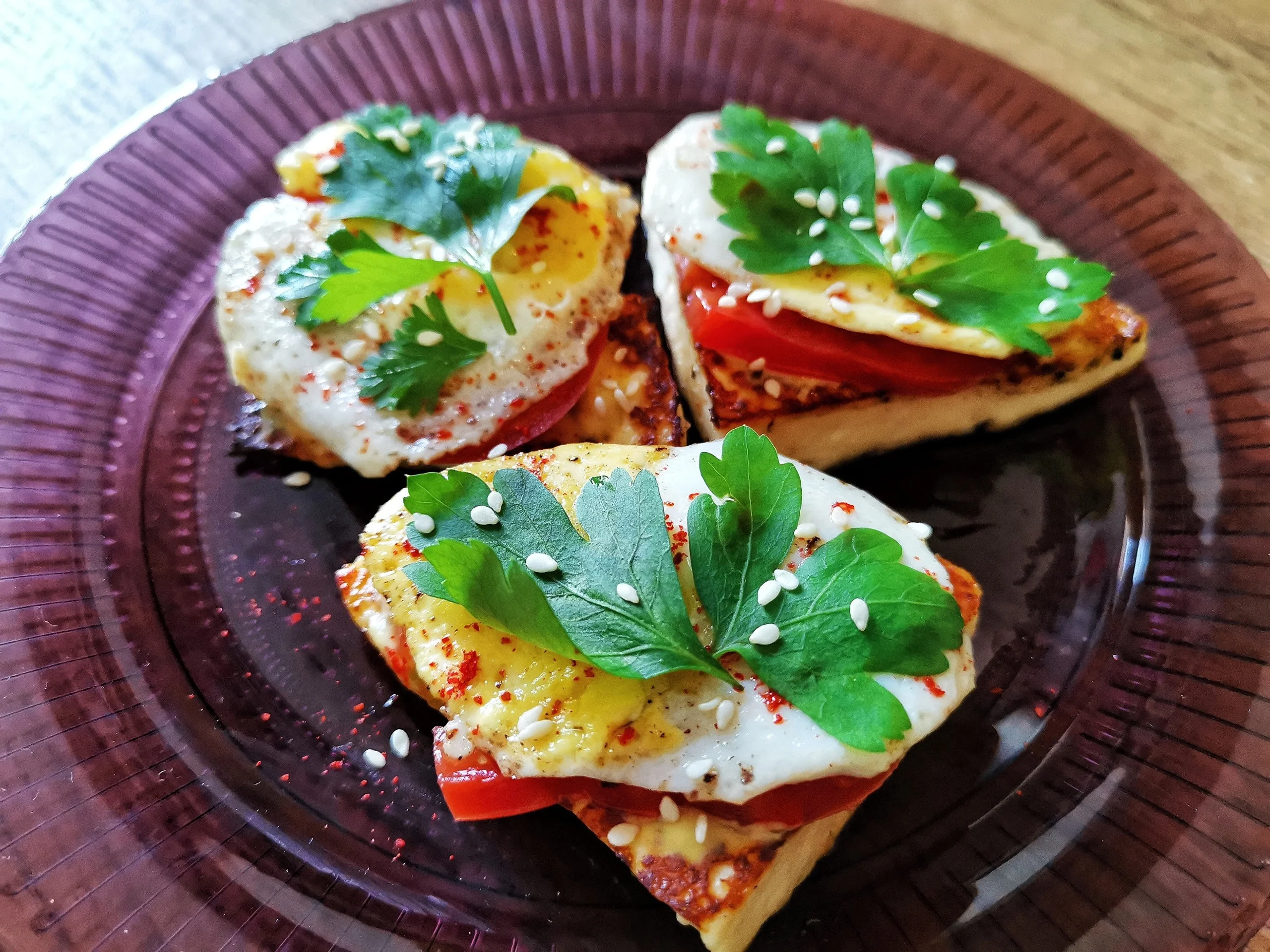 ШАГ 9 Выложить обжаренные яйца на будущие бутерброды.