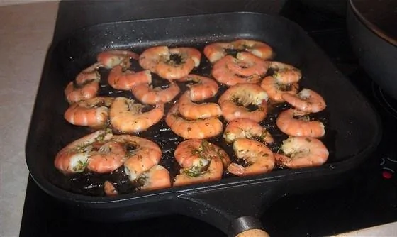 ШАГ 3 Разогрейте гриль и слегка смажьте маслом. Жарьте креветки 4 минуты, переворачивая, когда сторона станет розовая. Подавайте с укропным майонезом.