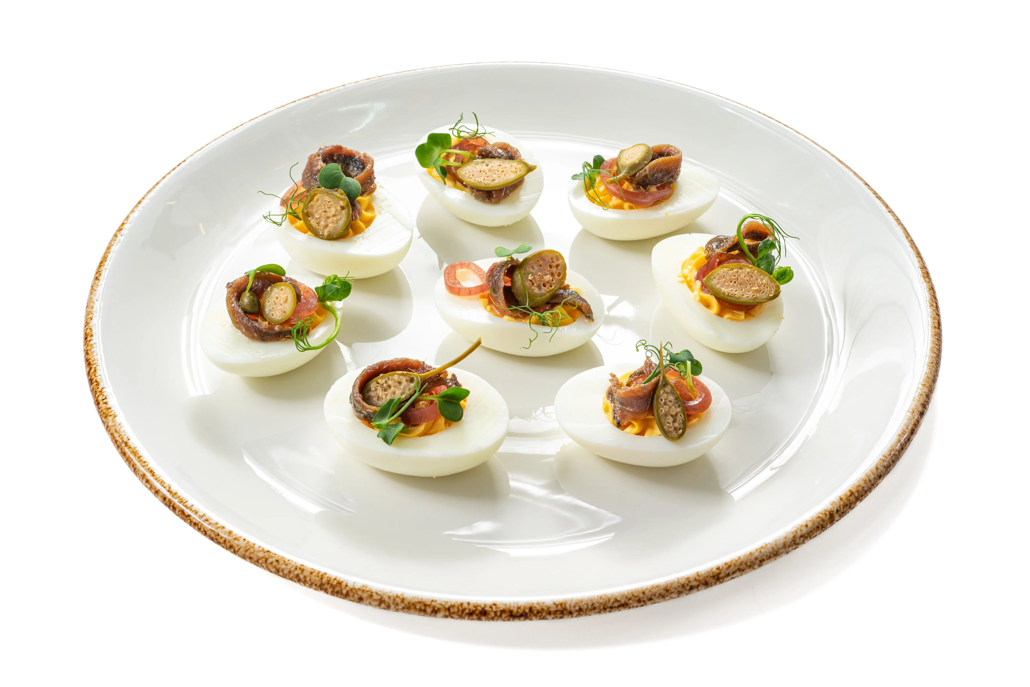 Фаршированные яйца с анчоусом и маринованным луком