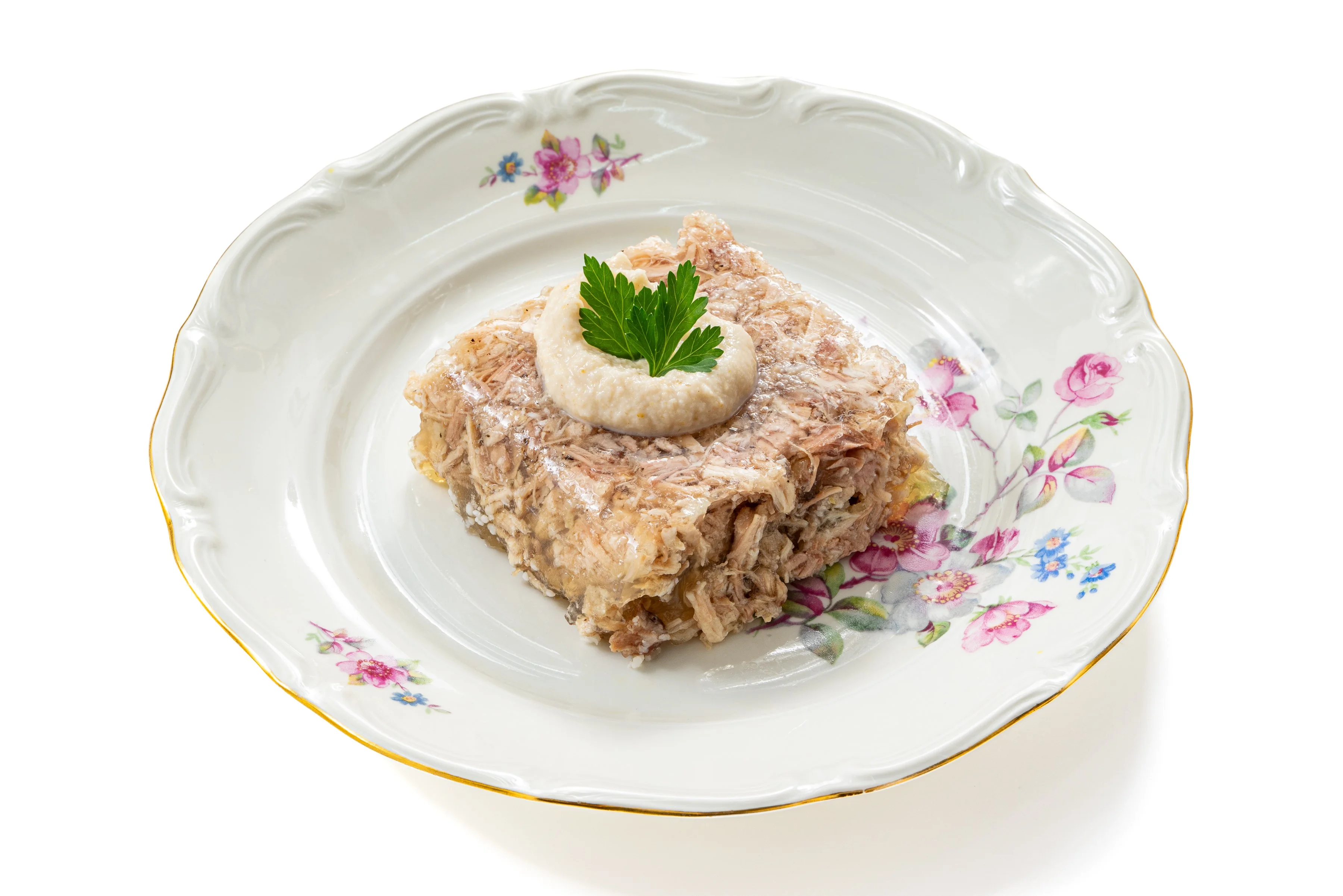 ШАГ 11 Готовый холодец из рульки подавать с хреном или горчицей.