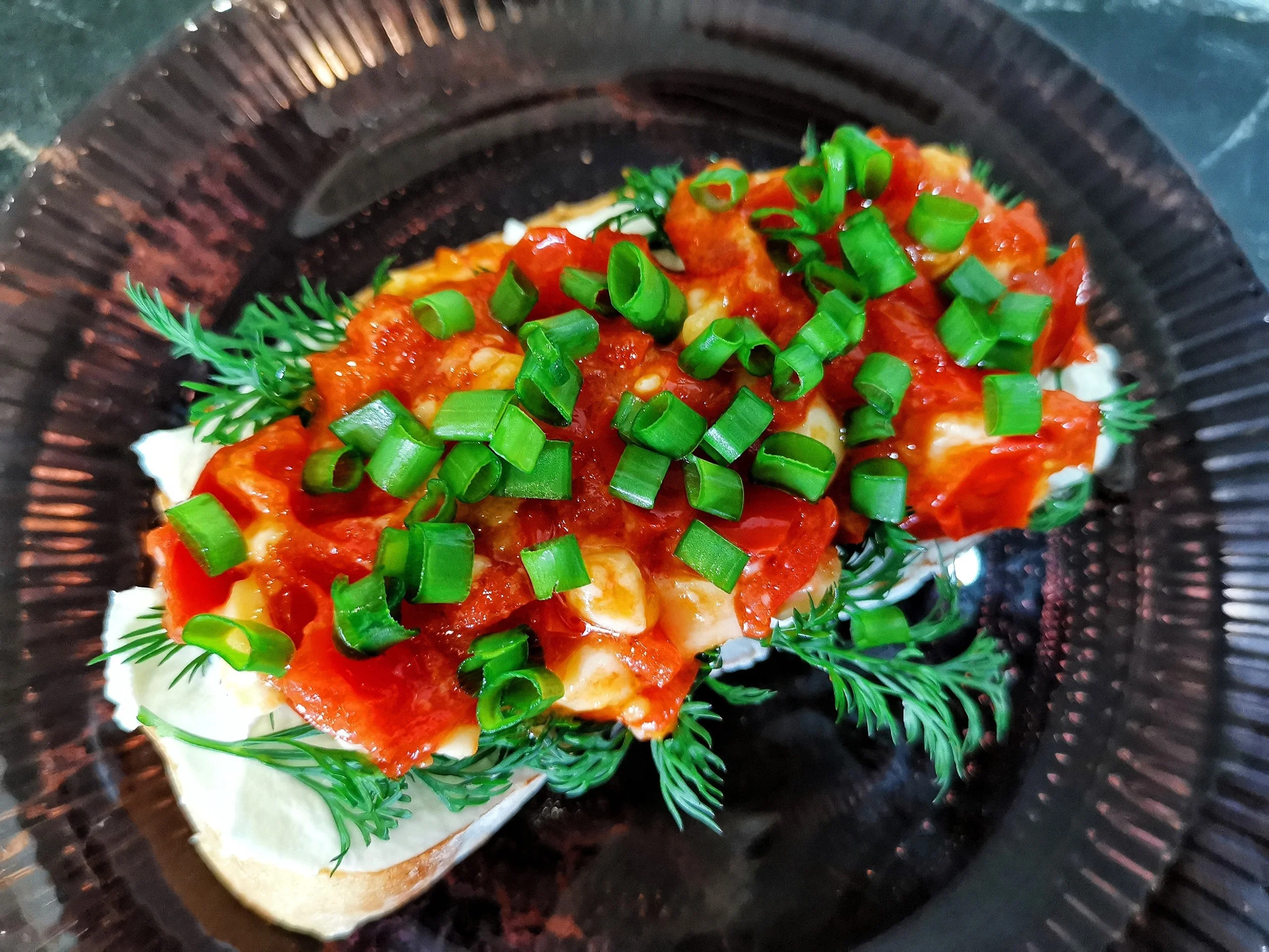 ШАГ 8 Хлеб смазать сметаной и добавить укроп.