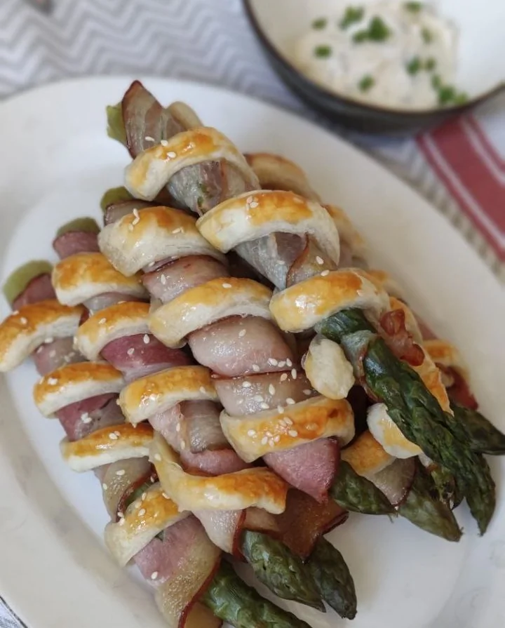 Ингредиенты для приготовления Спаржа в беконе и слоеном тесте: