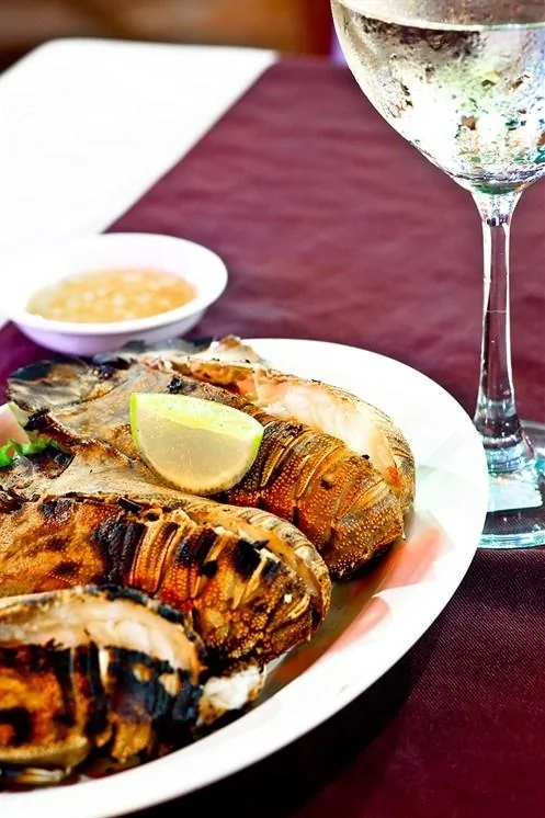 Лобстер в лимонно-масляном соусе с жареными лимонами