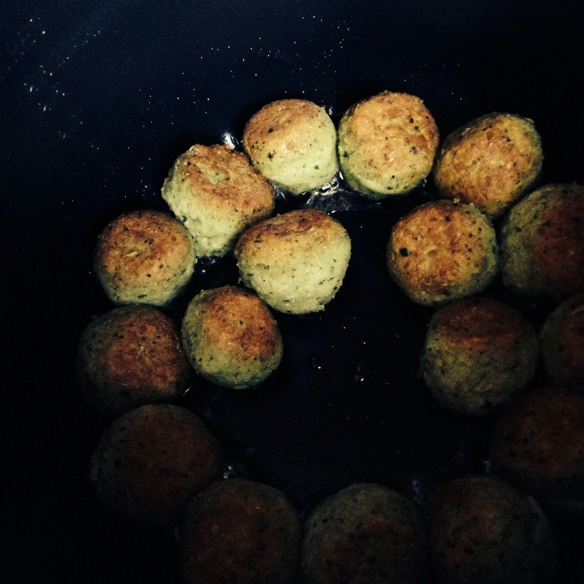 ШАГ 4 Мокрыми руками слепите из теста 24 овальные котлетки, размером с яйцо. Разогрейте растительное масло в кастрюле и жарьте фалафель 2-3 минуты до темно-коричневого цвета. Переложите на бумажное полотенце и сохраняйте теплыми в слегка разогретой духовке.