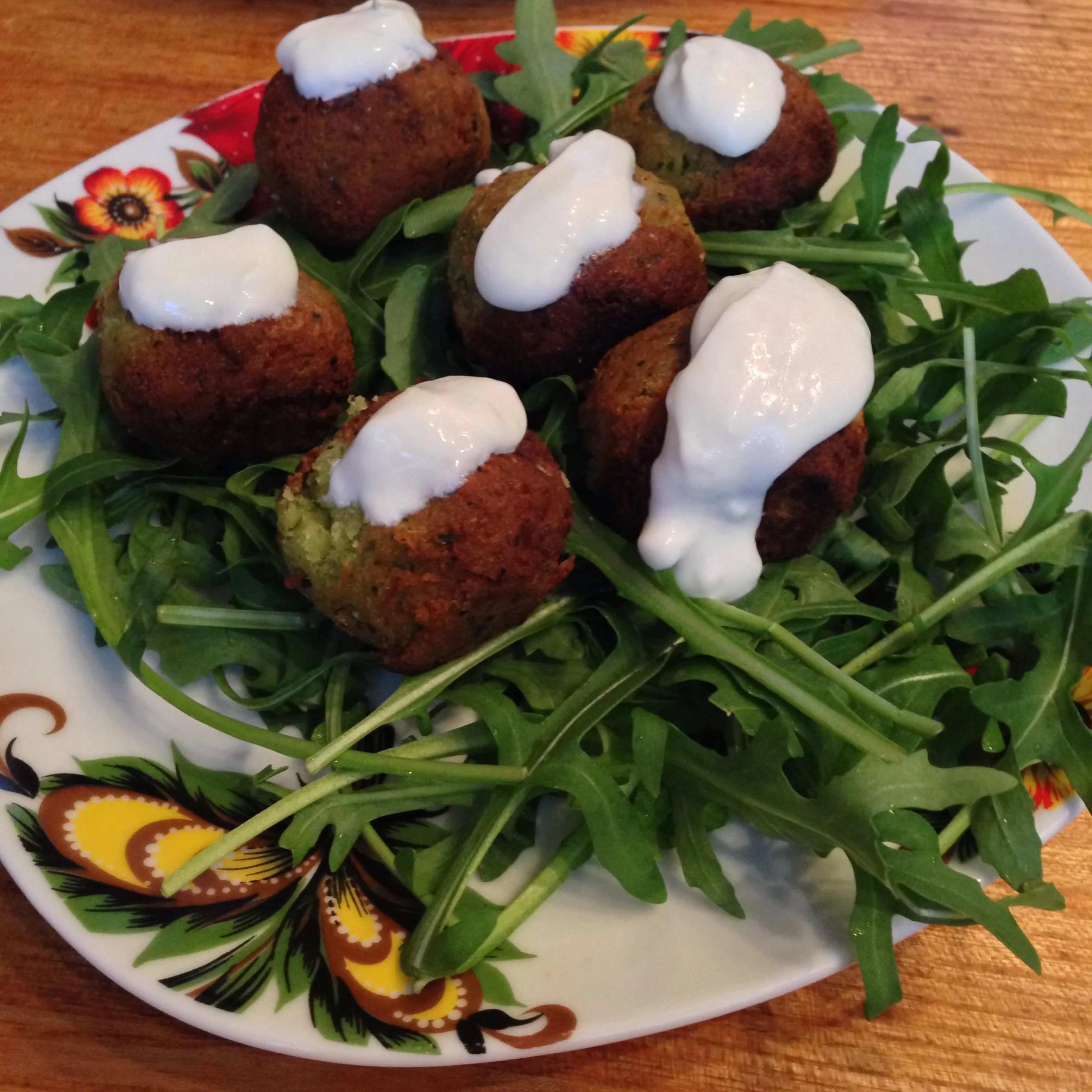 Фалафель с рукколой и йогуртовой заправкой с тахини