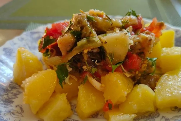 ШАГ 20 Выложить салат сверху картофеля и подать к столу.