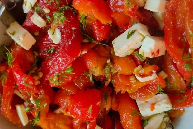 Ингредиенты для приготовления Салат из печеного перца с фетой: