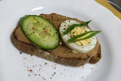 Бутерброд с икрой трески, яйцом и свежим огурцом