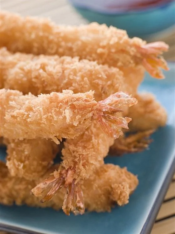 Жареные тигровые креветки в панировке с соусом