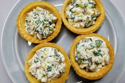 ШАГ 10 Выложить получившуюся начинку в тарталетки. Готово, можно подавать на стол.