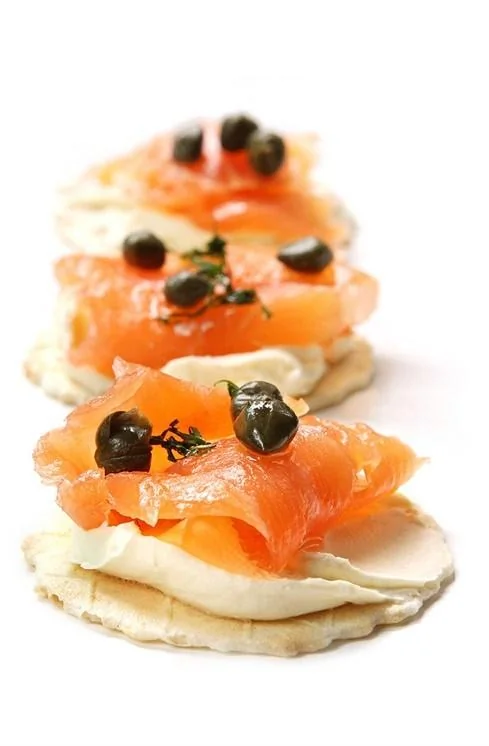 Копченый лосось с укропной сметаной и каперсами