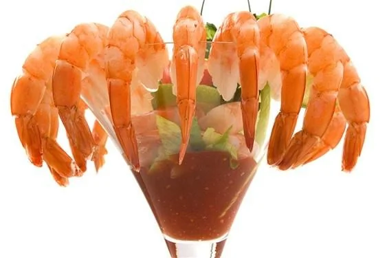 ШАГ 3 Доведите бульон с оставшимися ингредиентами, кроме креветок, до кипения на сильном огне и варите 2 минуты. Выключите огонь, добавьте креветки, накройте крышкой и оставьте на 8-10 минут, пока креветки не станут розовыми. Переложите креветки на лед и затем обсушите. Подавайте, разложив в бокалы на ножке с коктейльным соусом.